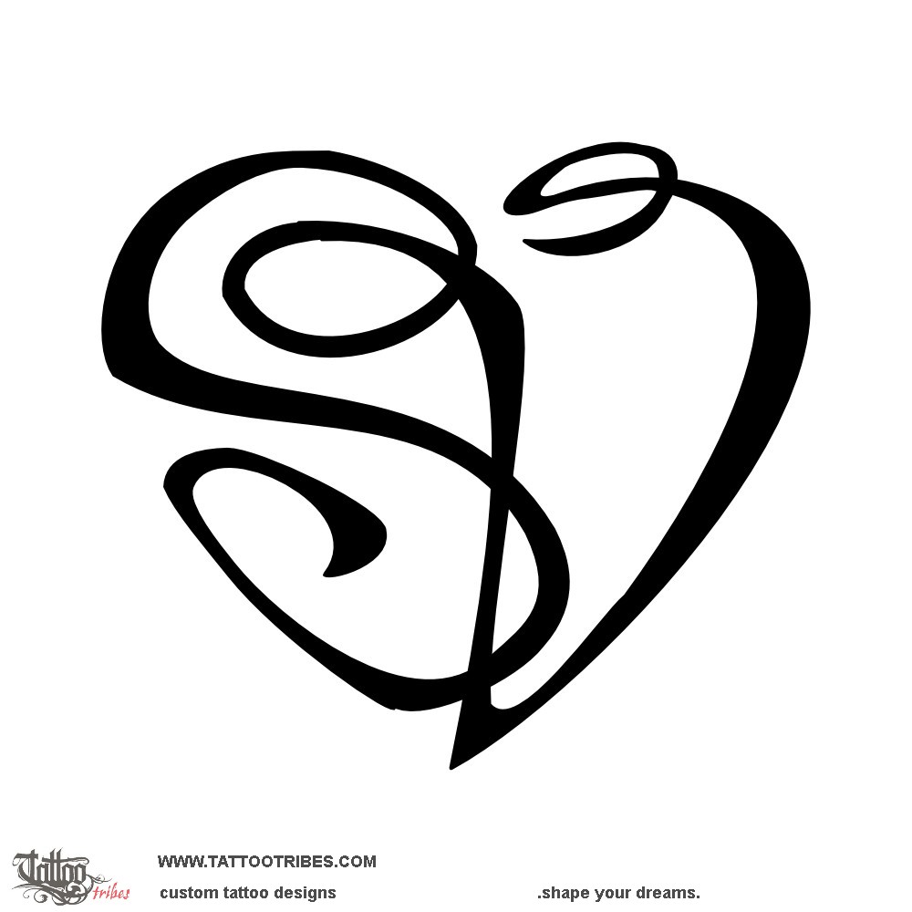 This heart tattoo was created with a single line that designes the letters S+V and it symbolizes their union.