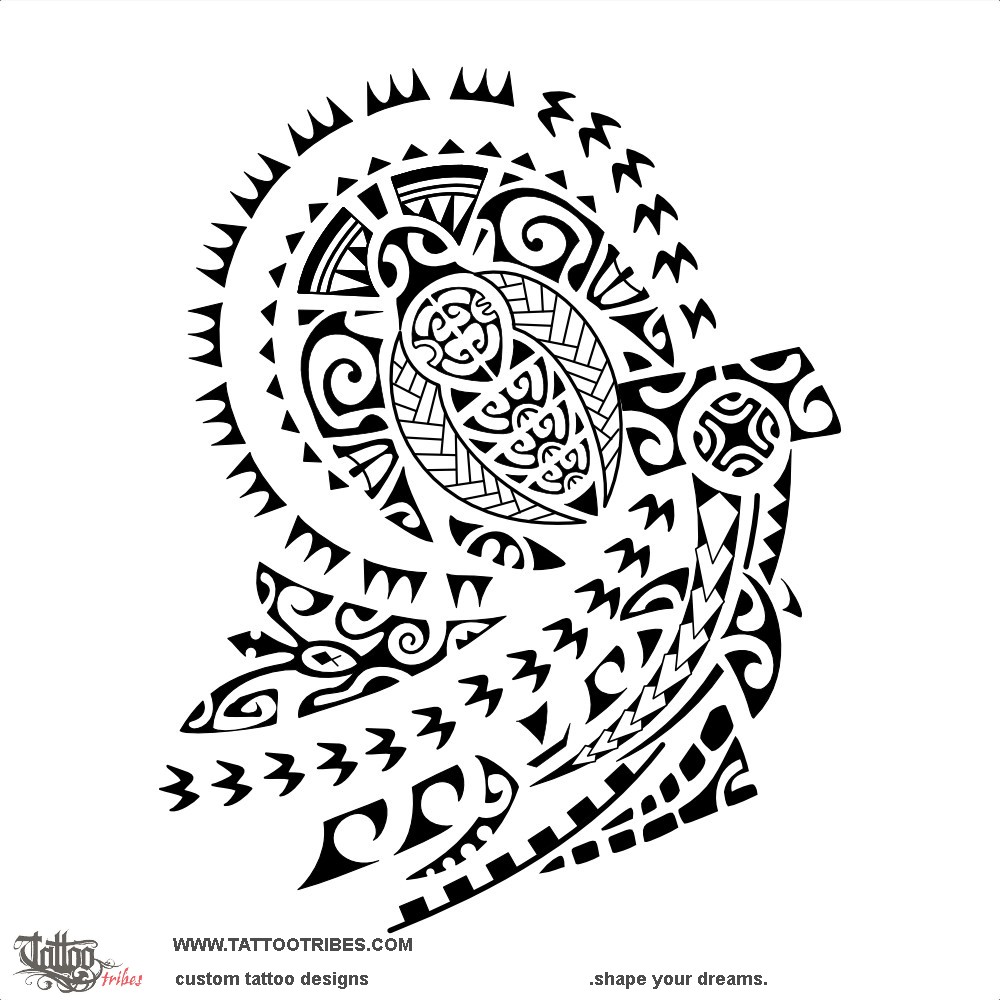 Polynesian tattoos explainedThe turtle for family in the center of this tattoo prepared for Aaron contains the symbol of the couple for him and his wife, with their three children below, all surrounded by a braid for family union.