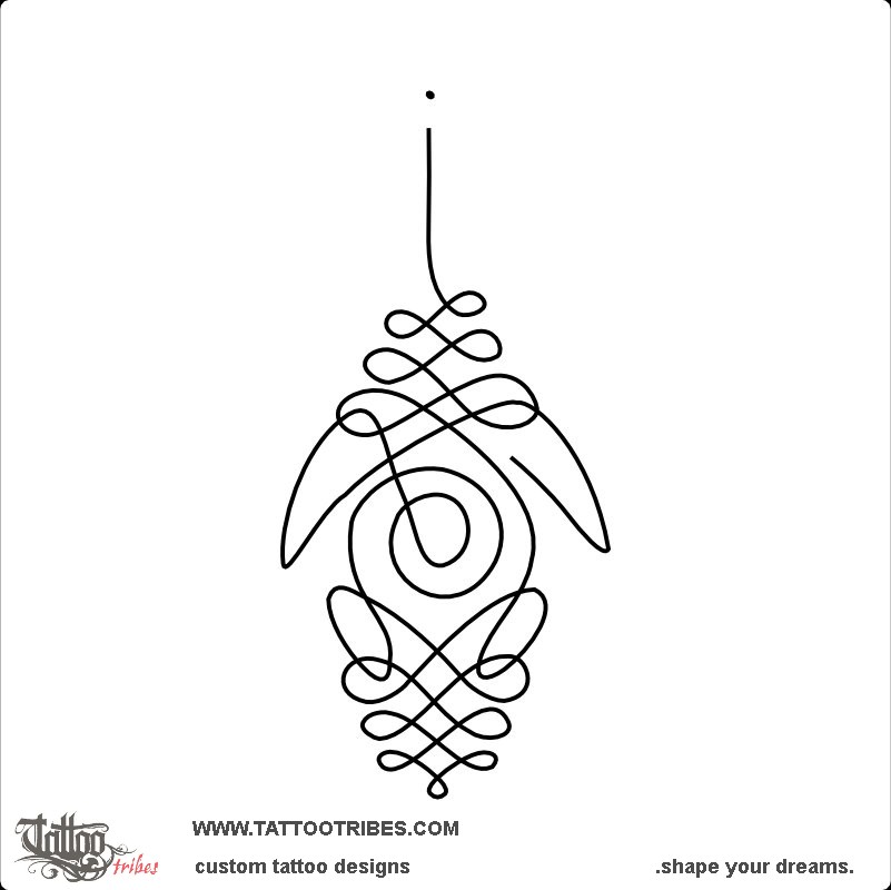 The unalome symbolizes the path to perfection, which was reached in this tattoo prepared for Francesca through the creation of her own family, represented by the turtle.