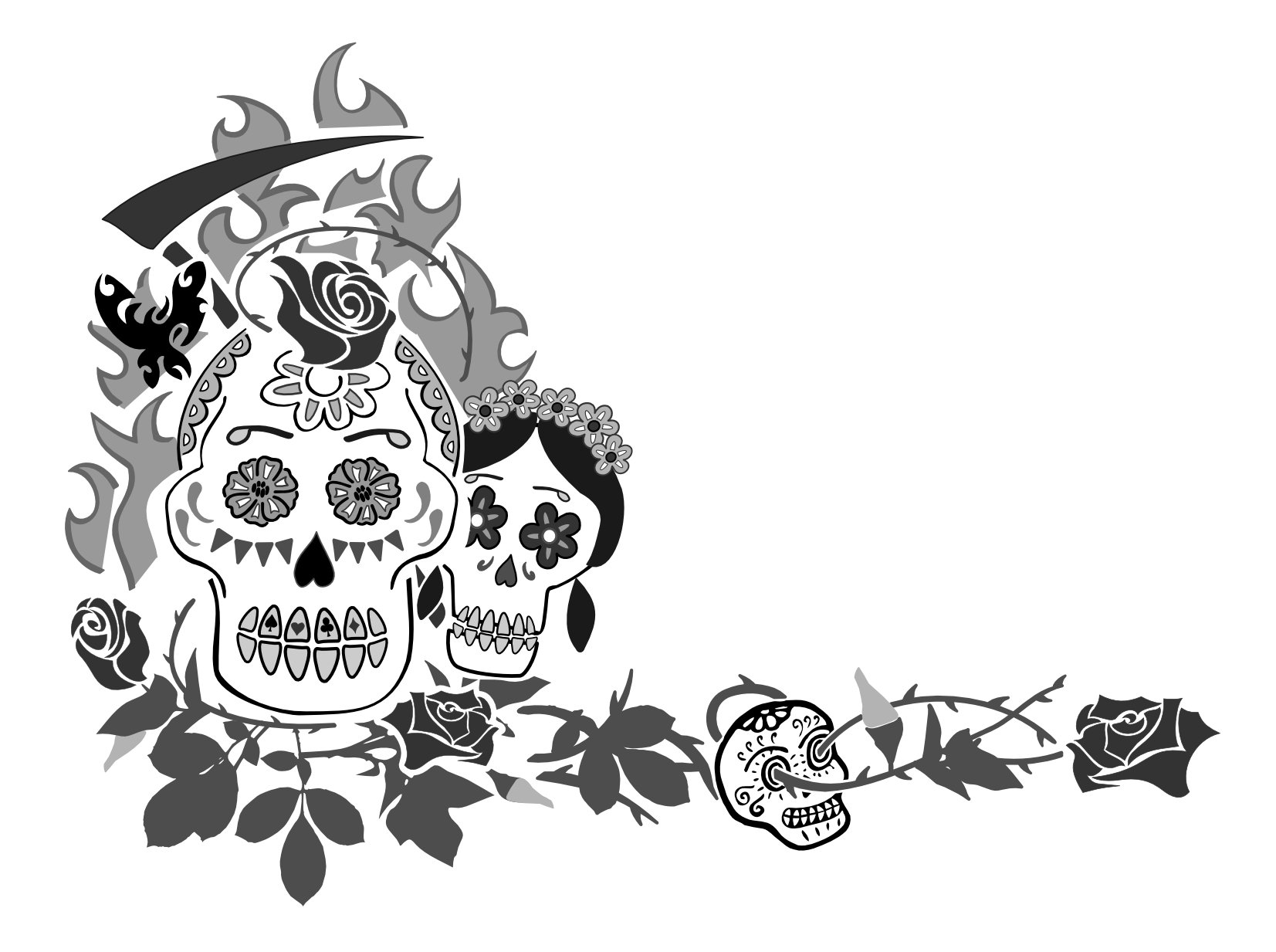 The meaning of this design must not surprise: the days of the dead in Mexico, or "dia de los muertos", are not a mournful moment, but a chance to make the dear ones who died live again. It is believed that during these days the spirits of the dead can get in contact with the world of the living, and thus families decorate cemeteries with marigold flowers and candles, and prepare small altars on the graves where they offer to the dead their favourite meals, so that their essence can feed the spirits.