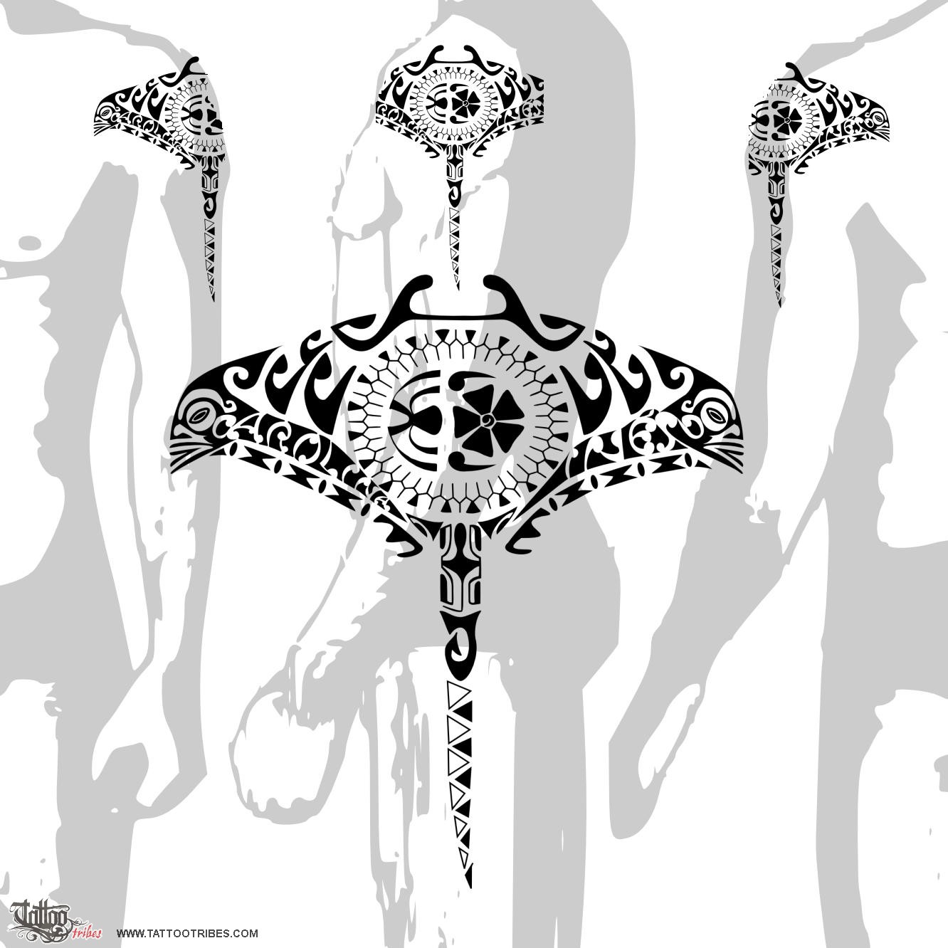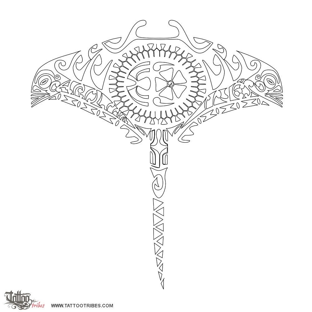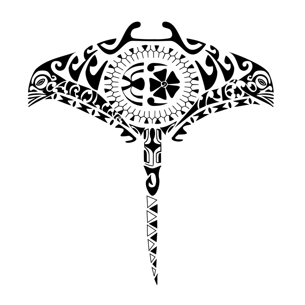 Waves are for the water, natural element of the manta ray (freedom and elegance), and the two tikis on the sides are for protection from every direction. The tail is made of a lizard (good luck), a fish hook (wealth) and shark´s teeth (strength and adaptability).