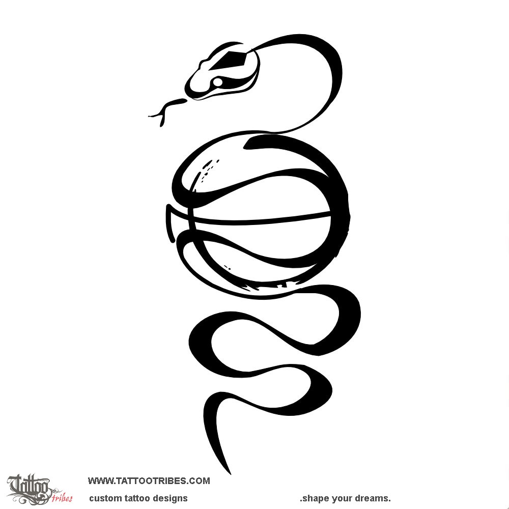 This small stylized tattoo requested by Elena joins a snake and a basketball, and it represents two passions related to the world of sports.