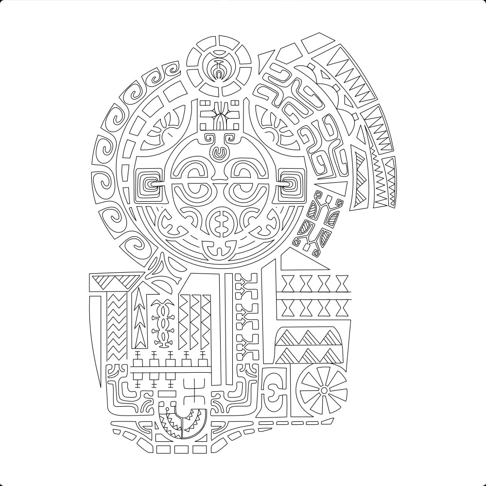 The coconut leaves on the pec symbolize prosperity in his future, with the Marquesan cross to symbolize harmony and balance.