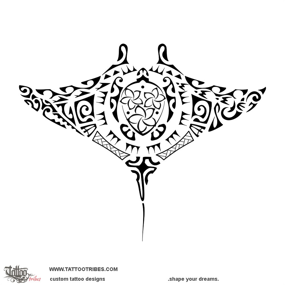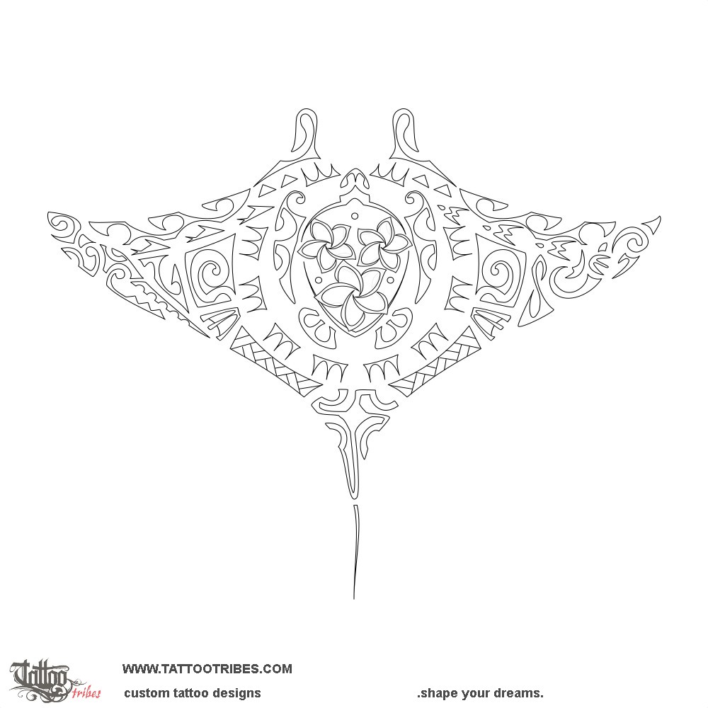 The tiki on the sides protect family from all directions while the Marquesan cross surrounded by braids near the tail of the manta symbolizes union being the base of the harmony in the family.